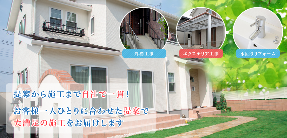 外構工事、エクステリア、水回りリフォームは是非当社にお任せください。一級土木施工管理技士が、適正価格でお客様に満足していただける提案・施工を提供いたします。